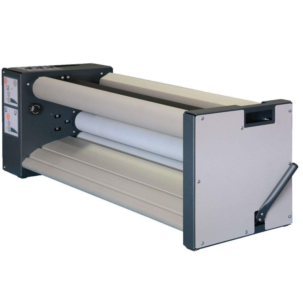 Der EASYLAM 160 TC ist das Topmodell für Großformate und anspruchsvolle Laminieraufgaben. Mit 1620 mm Laminierbreite, optionalem Längsschneidesystem und einer komfortablen elektronischen Steuerung über Tastatur oder Fußpedal bietet er maximale Effizienz und Kontrolle. Dank FOAM- und FILM-Funktion lässt sich der Walzendruck optimal an jedes Material anpassen.